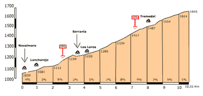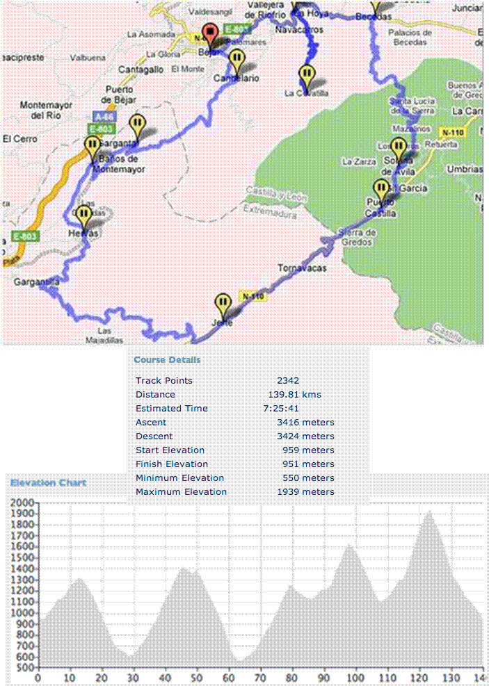 El sábado día 22 de mayo afrontaremos una etapa de 140 Km´s de recorrido y 3416 m de desnivel acumulado con las ascensiones a La Garganta, en la Sierra de Candelario, el puerto de Honduras desde Hervás, Tornavacas desde el valle del Jerte, El Tremedal y para los más valientes la guinda en la estación de esquí de La Covatilla. Esta última ascensión se puede esquivar con lo que la etapa quedaría en unos 105 Km y 2400 m de desnivel.